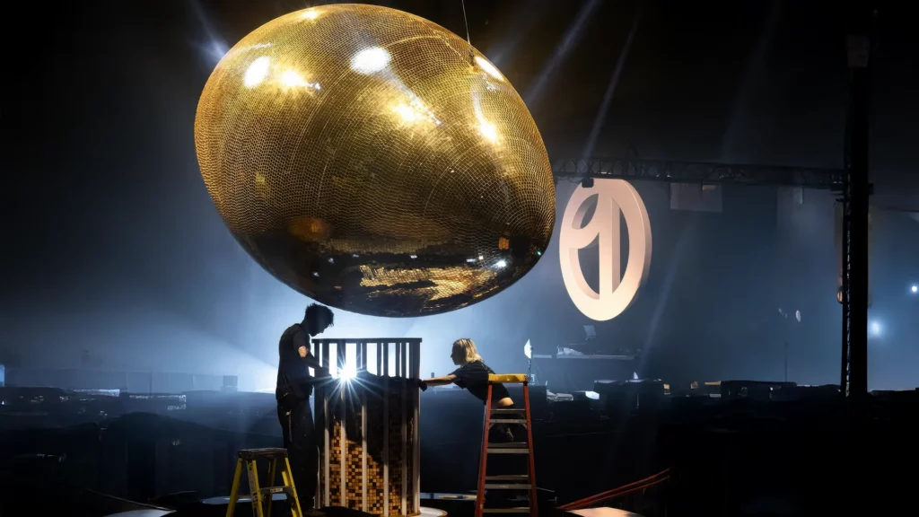 Custom Fabrication of massive football-shaped disco balls for Uber's Super Bowl LIX Party, finished product shown