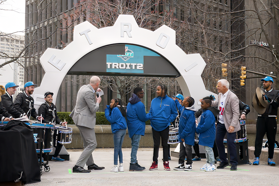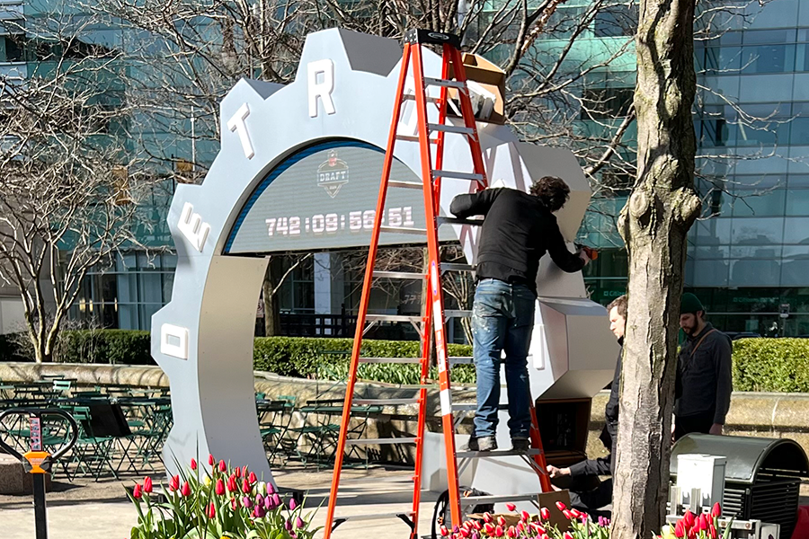 Built in our shop and assembled on site, the clock became a visual focal point and a symbol of anticipation across the city. It reflected not only the excitement around the Draft, but the pride Detroit takes in hosting major national events.
