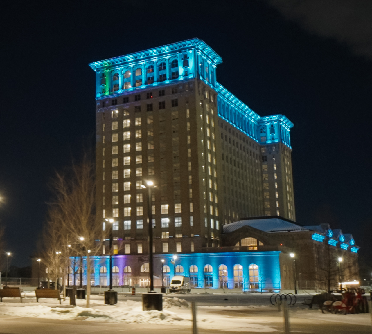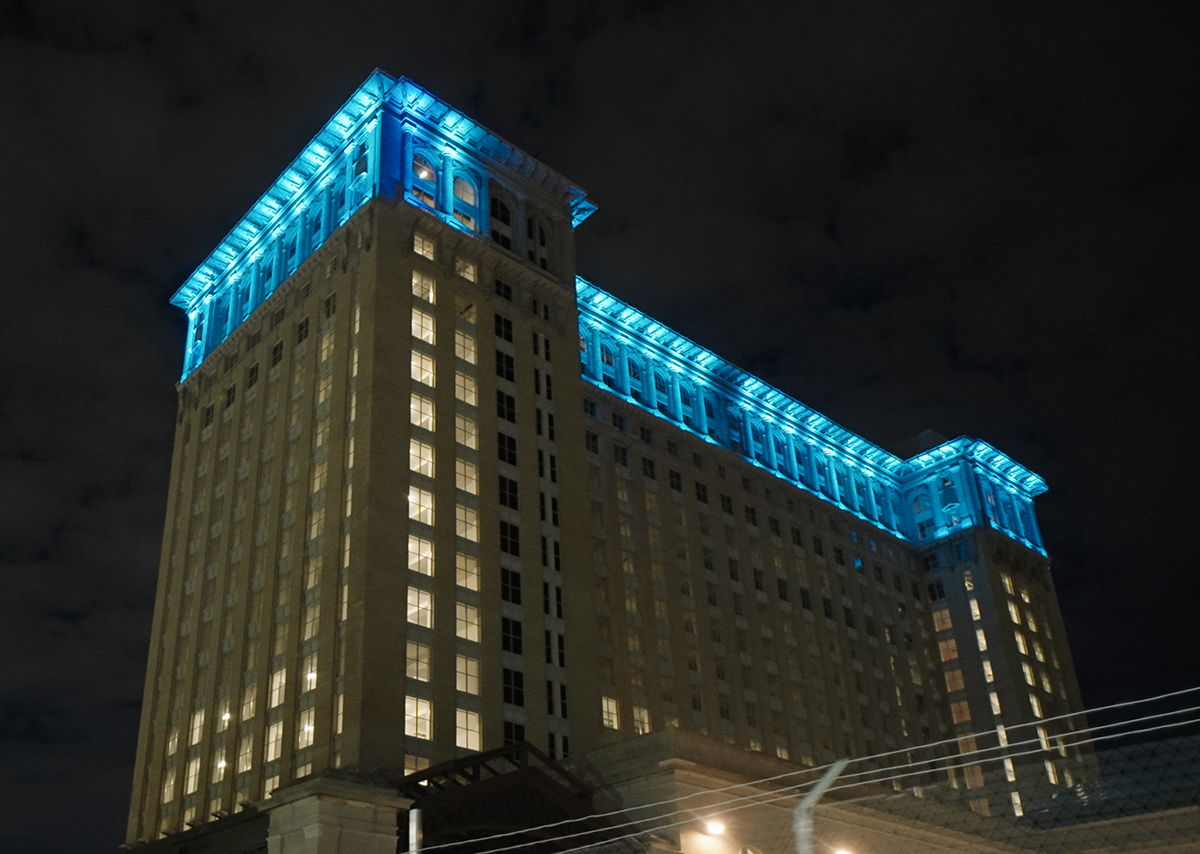 The centerpiece of this effort was the Michigan Central Station. Known for its historic significance, the building had traditionally been lit only in white. However, it was originally designed with the capability to change colors, to serve as a beacon for community spirit. Seeing it lit in Lion’s Blue created a buzz on social media and was a highlight of this city-wide transformation.